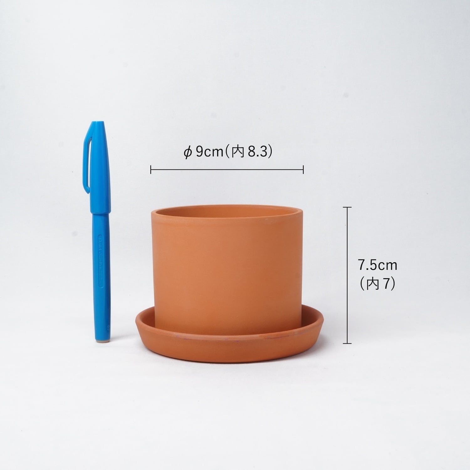 幅9(内8.3) / 高7.5(内7) ※鉢底穴あり