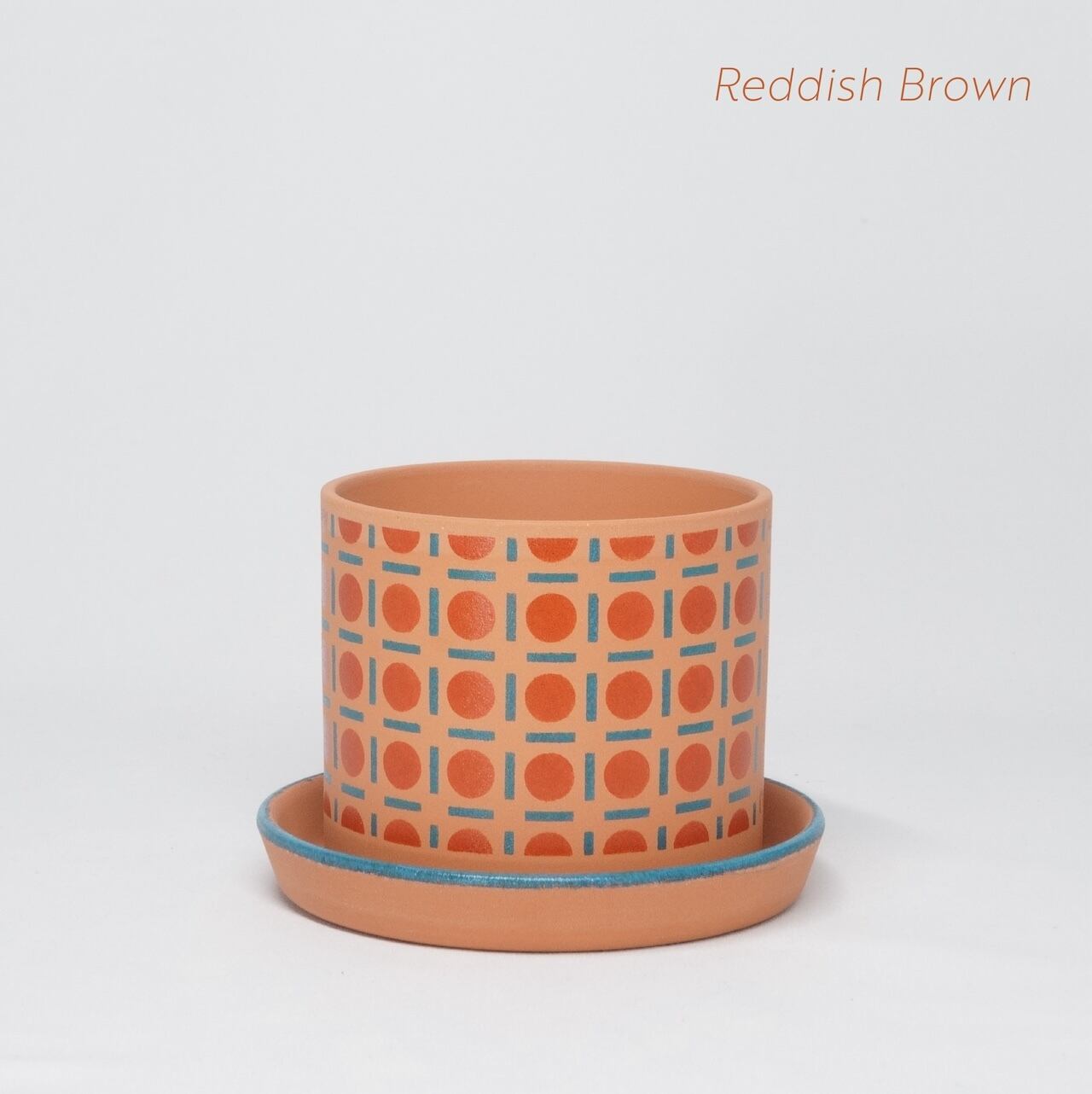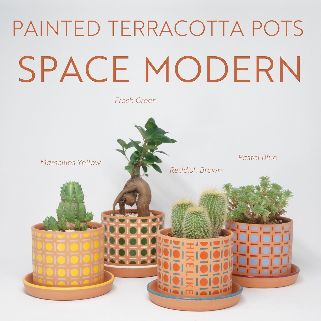 国産テラコッタ鉢をキャンバスとして、ハンドペイントにて色彩豊かで有機的なデザインを表現。特殊な塗料を焼付けておりますので、直接植えていただけますし鉢カバーとしてもご使用いただけます。また、小物入れなどとしてもちょうど良いサイズ感です。