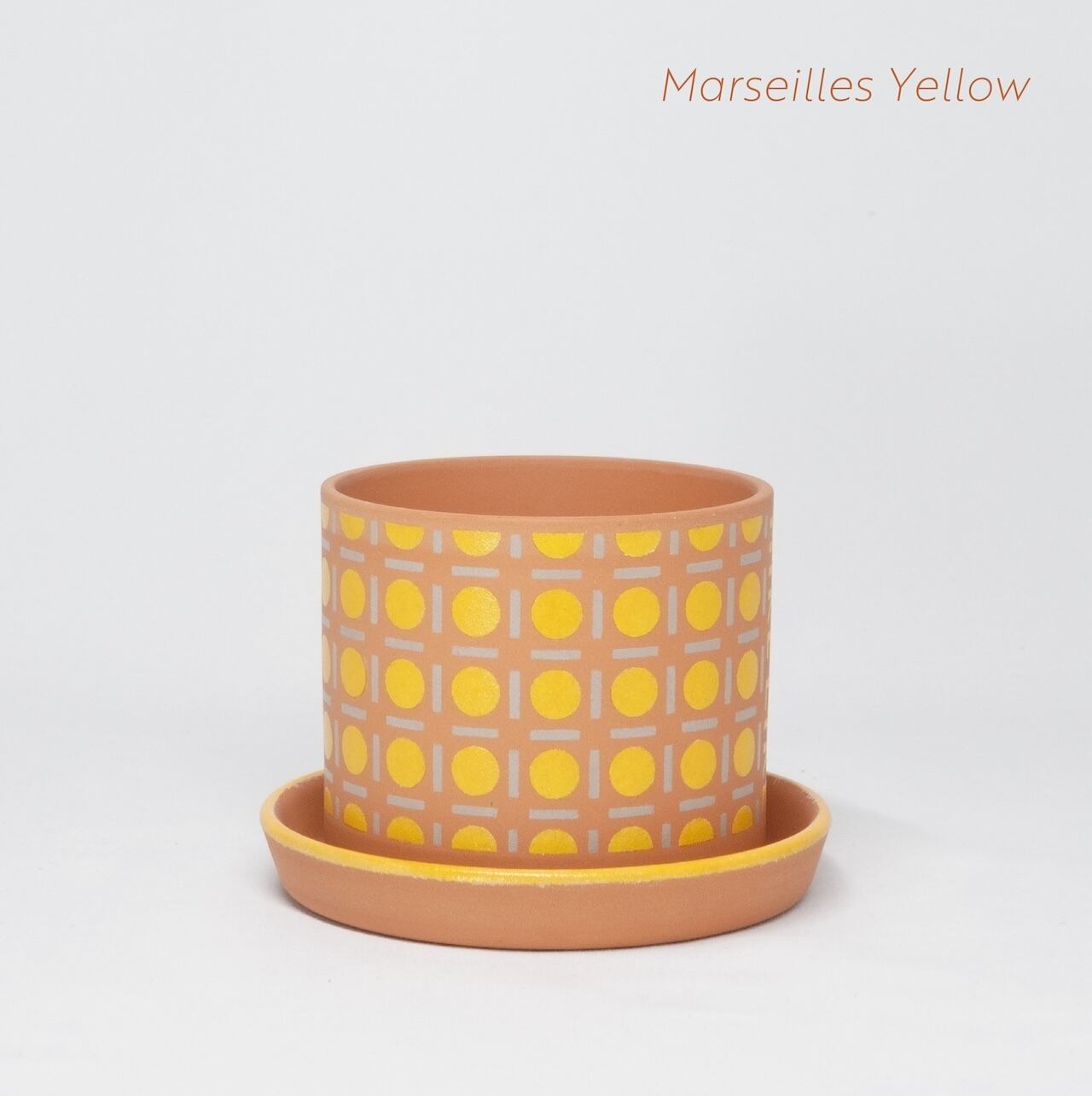 国産テラコッタ鉢をキャンバスとして、ハンドペイントにて色彩豊かで有機的なデザインを表現。特殊な塗料を焼付けておりますので、直接植えていただけますし鉢カバーとしてもご使用いただけます。また、小物入れなどとしてもちょうど良いサイズ感です。