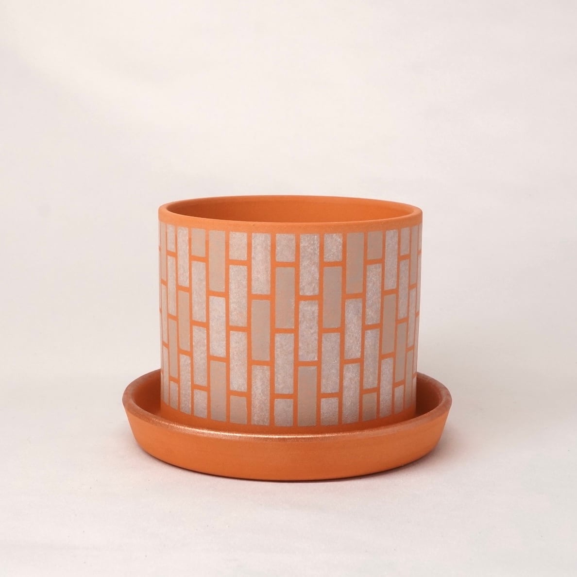 国産テラコッタをキャンバスとして、ハンドペイントやステンシルを施し、色彩豊かで有機的なデザインを表現。特殊な塗料で絵付けをし、自然乾燥させたのち焼き付けております。